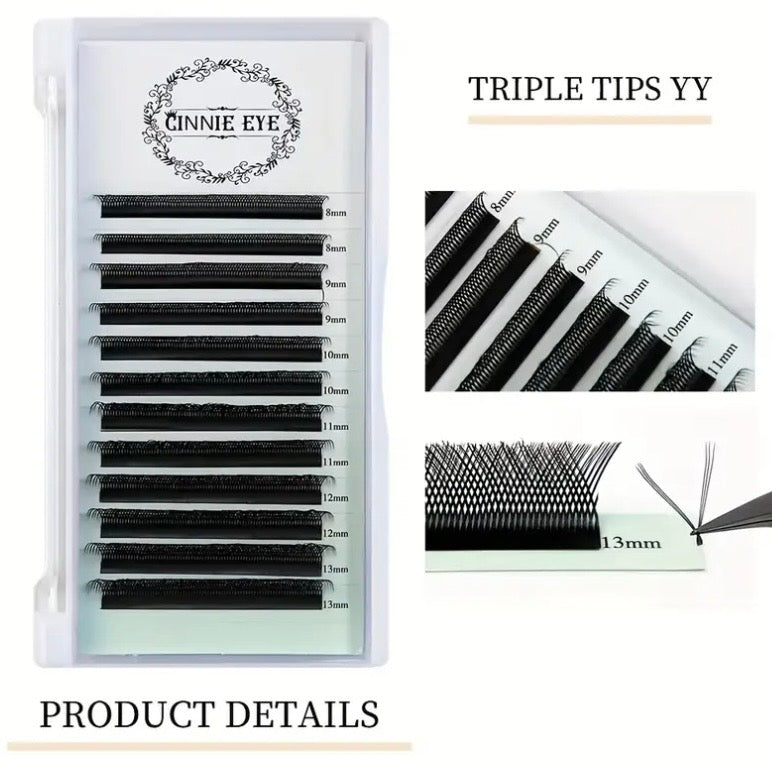 Pestañas YY / Y Shape con 3 puntas divididas para lograr un volumen ligero y definido en menos tiempo.